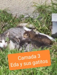 Aquí tenemos nuestras primeras tres camadas de gatitos en adopción. Las mamis Blakie, Danae y Eda están pendientes de su tropa que aún maman y pendientes del destete.